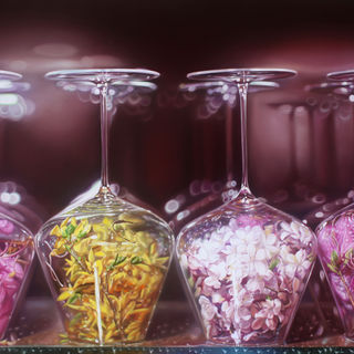 최근 작업에서는 와인 잔에 갇힌 꽃들이 밖으로 나와 “천국의 정원(Garden of Heaven)” 이라는 주제로 와인의 보이지 않는 주요 부케인 꽃향기들을 시각적으로